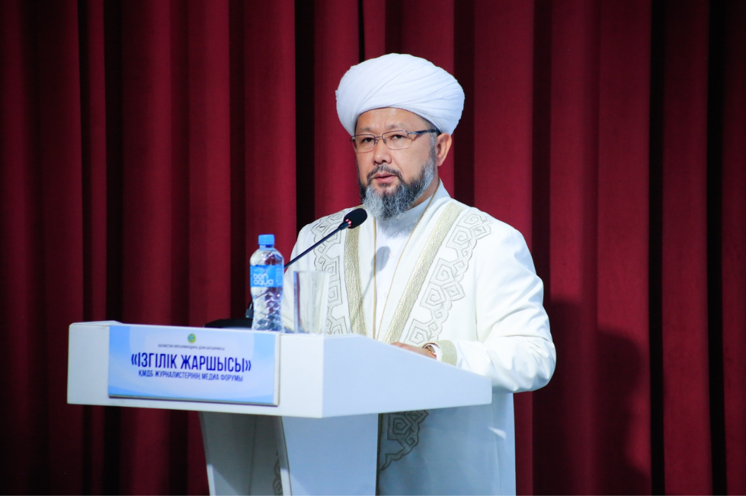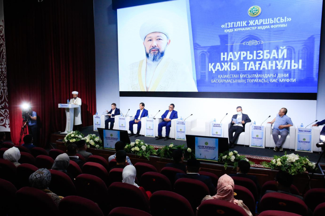 Қазақстан мұсылмандары діни басқармасы ғимаратындағы «әл-Фараби» залында өтіп жатқан «Ізгілік жаршысы» республикалық медиафорумында Бас мүфти Наурызбай қажы Тағанұлы баяндама жасады.
