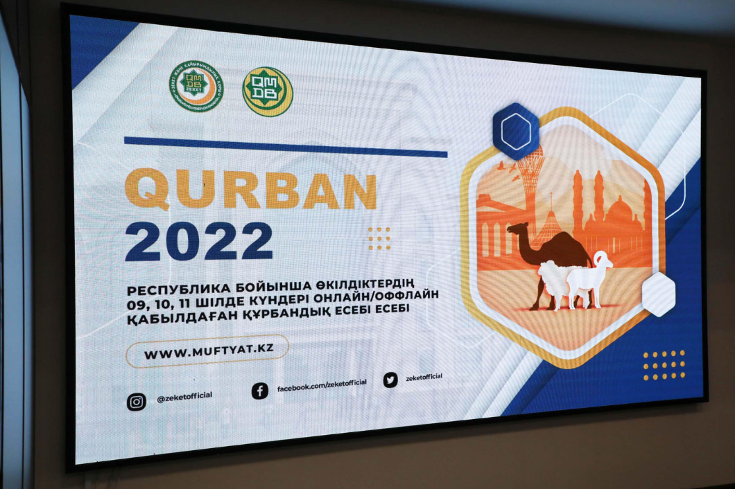 Жиын барысында «Зекет және қайырымдылық» қорының директоры Қанат Қыдырмин мен Ақпарат бөлімінің меңгерушісі Ағабек Қонарбайұлы баяндама жасап, жұмыс есебін назарға ұсынды. Қанат Қоянбекұлы биылғы Құрбан айтта ауыз толтырып айтарлықтай ауқымды жобалардың қолға алынғанын, оның бірнешеуіне Бас мүфти арнайы қатысқанын атап өтіп, мереке күндері құрбан еті 129 040 отбасыға таратылғанын мәлімдеді.