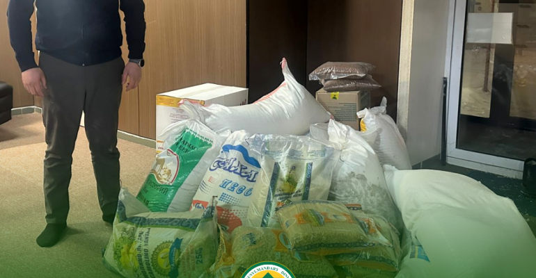 Новости 05 марта 2026 Просмотров: 143 Астана қаласындағы Хусамуддин Ислам институтында ілім алып жатқан шәкірттерге азық-түлік жеткізілді