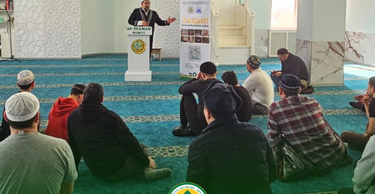Новости 05 марта 2026 Просмотров: 121 Астана қаласы Ар-Рахман мешітінде жамағатқа Уақып қорының маңызы туралы насихат жұмыстары жүргізілді