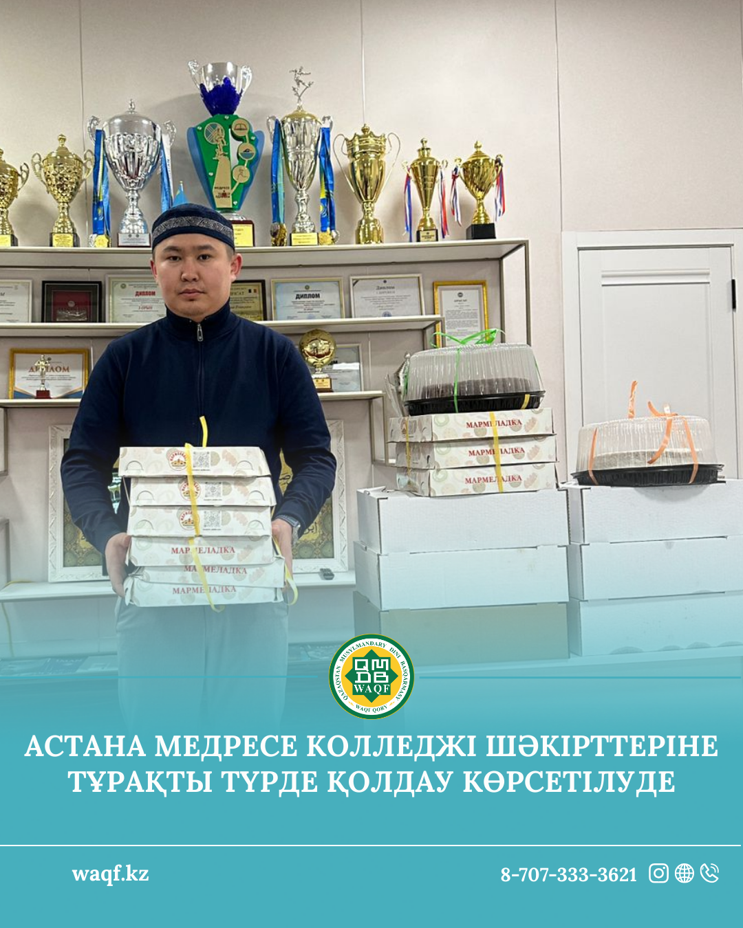 ҚМДБ Төрағасы, Бас мүфти Наурызбай қажы Тағанұлы хазіреттің 2026 жылға бекіткен «Уақып» корпоративтік қайырымдылық қорының жоспары аясында Астана медресе-колледжі шәкірттеріне тұрақты қолдау көрсету жұмыстары жалғасуда.