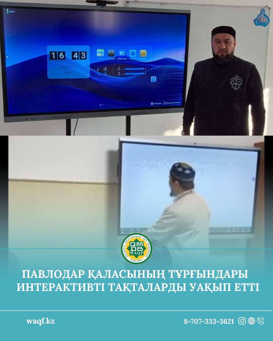 Павлодар қаласының тұрғындары діни білім беру ісіне үлес қосып, әрқайсысының құны 500 000 теңге болатын 6 дана интерактивті тақтаны уақып етті.