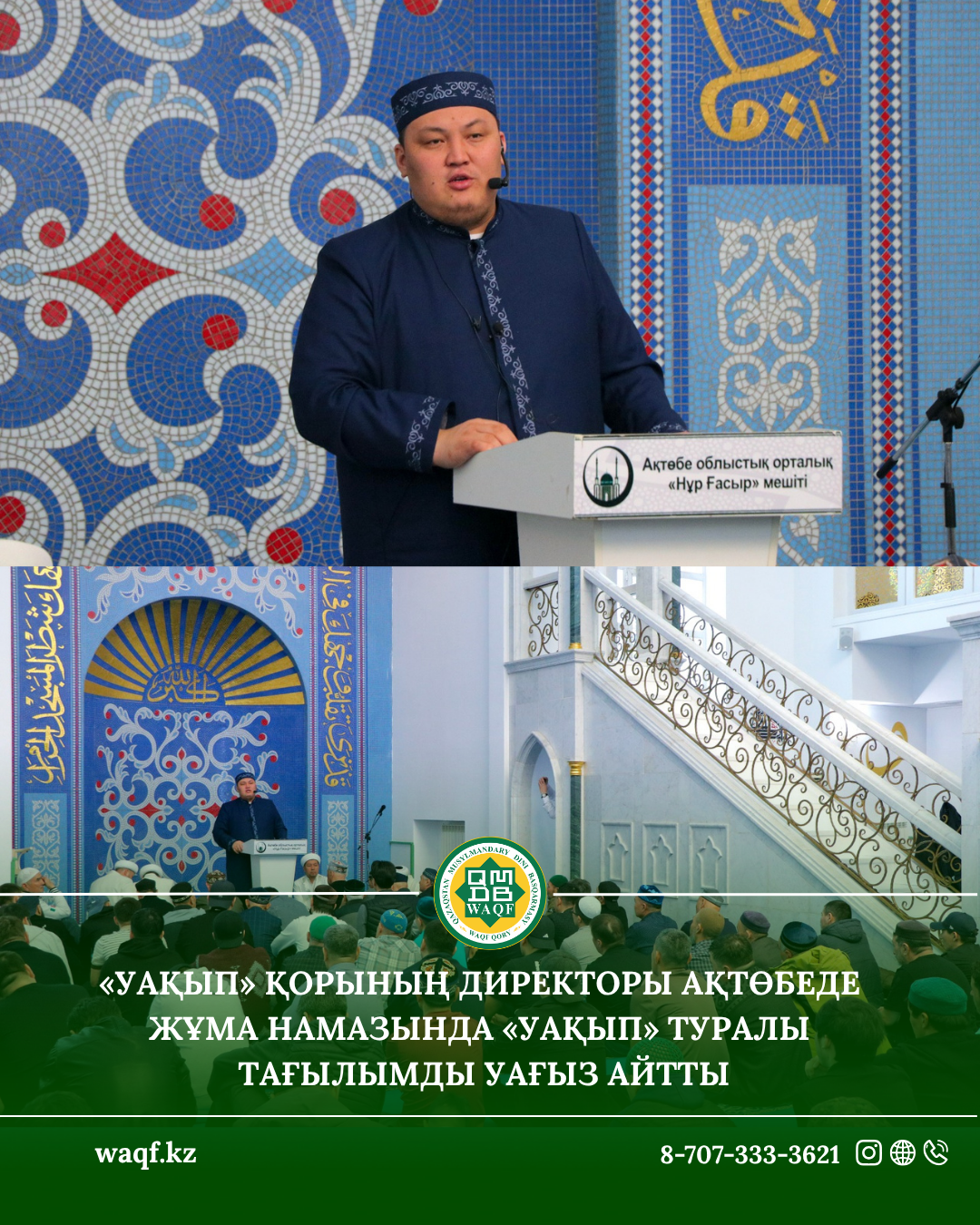 “УАҚЫП” ДИРЕКТОРЫ АҚТӨБЕДЕ ЖҰМА НАМАЗЫНДА «УАҚЫП» ТУРАЛЫ ТАҒЫЛЫМДЫ УАҒЫЗ АЙТТЫ