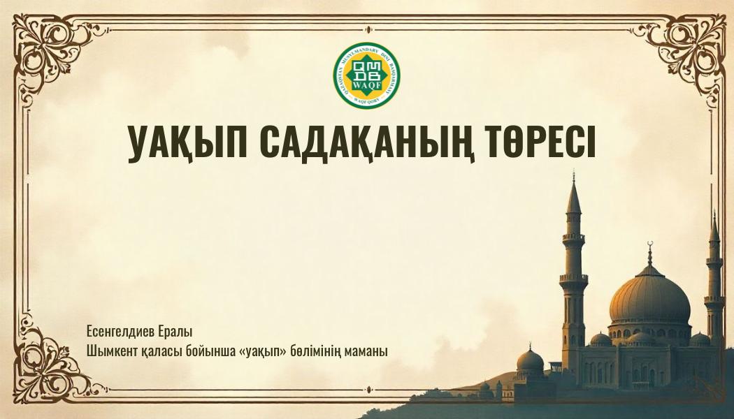 Ислам діні адамзатты ізгілікке, қайырымдылық жасауға және қоғамға пайда тигізуге үндейді. Осындай сауапты амалдардың ішінде айрықша мәнге ие құлшылықтың бірі – садақа жария. Ал садақа жарияның ең көркем әрі тұрақты түрі - уақып болып табылады.