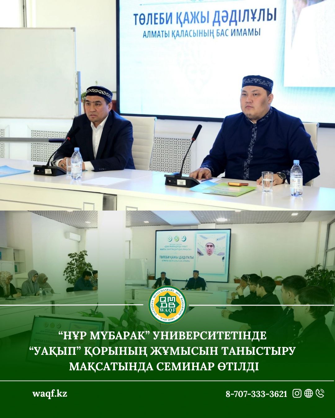 Новости 27 марта 2026 Просмотров: 71 “Нұр Мүбарак” университетінде “УАҚЫП” қорының жұмысын таныстыру мақсатында семинар өтілді