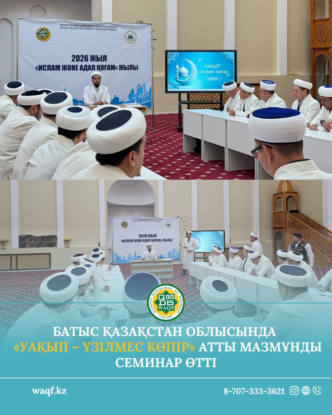 Новости 26 января 2026 Просмотров: 492 Батыс Қазақстан облысы өкілдігінің ұйымдастыруымен «Уақып – үзілмес көпір» атты мазмұнды семинар өтті