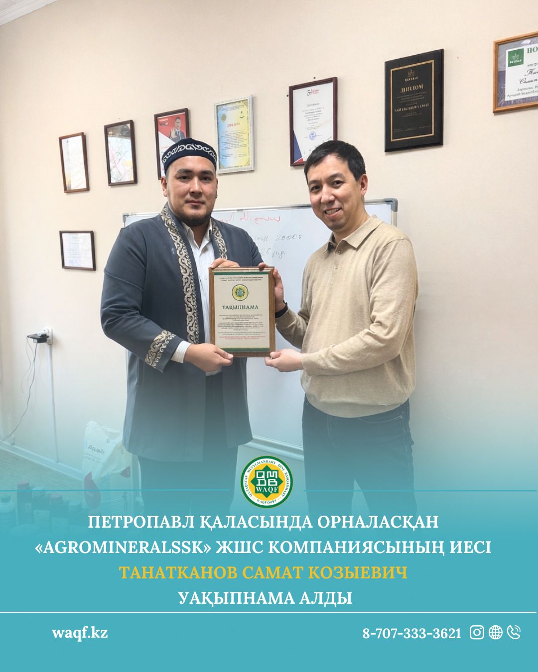 Новости 27 января 2026 Просмотров: 195 Петропавл қаласында орналасқан «AgroMineralsSK» ЖШС компаниясының иесі Танатканов Самат Козыевич игі ниетпен уақыпнама алды