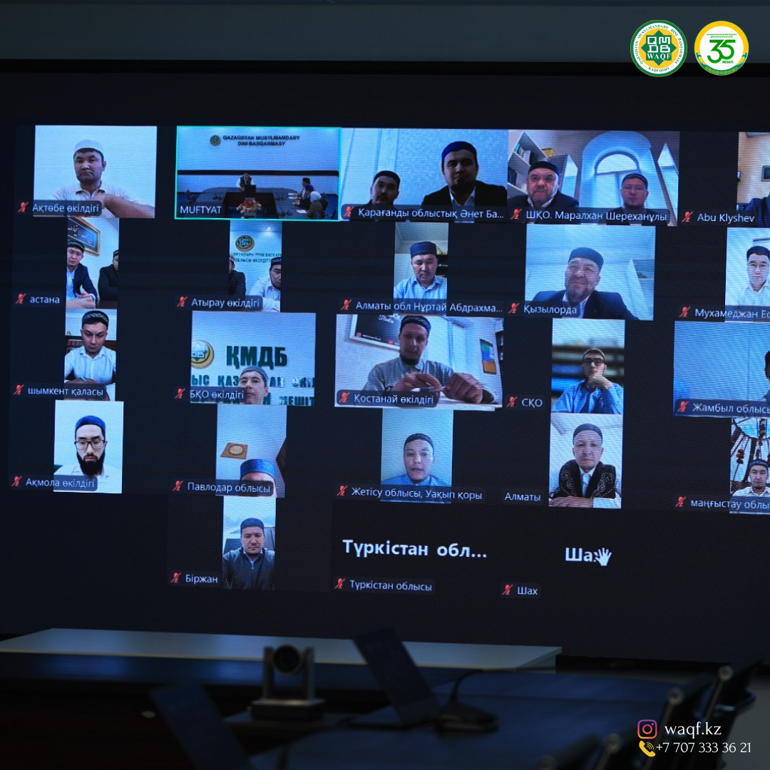 Жиында ҚМДБ Төрағасы, Бас мүфти Наурызбай қажы Тағанұлы хазреттің тапсырмасына сәйкес, ҚМДБ Наиб мүфтиі Ермек қажы Мұқатай уақып жұмыстарын күшейту, қайырымдылық бастамаларын жүйелеу және қасапхана ісін дамыту мәселесіне ерекше назар аударды.