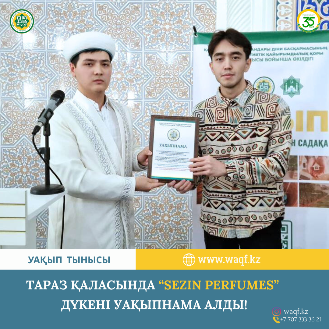 Тараз қаласында хош иіс өнімдерін ұсынып келе жатқан “Sezim Perfumes” кәсіпорны Уақып қорының қолдаушысы атанып, Уақыпнама иегері болды.