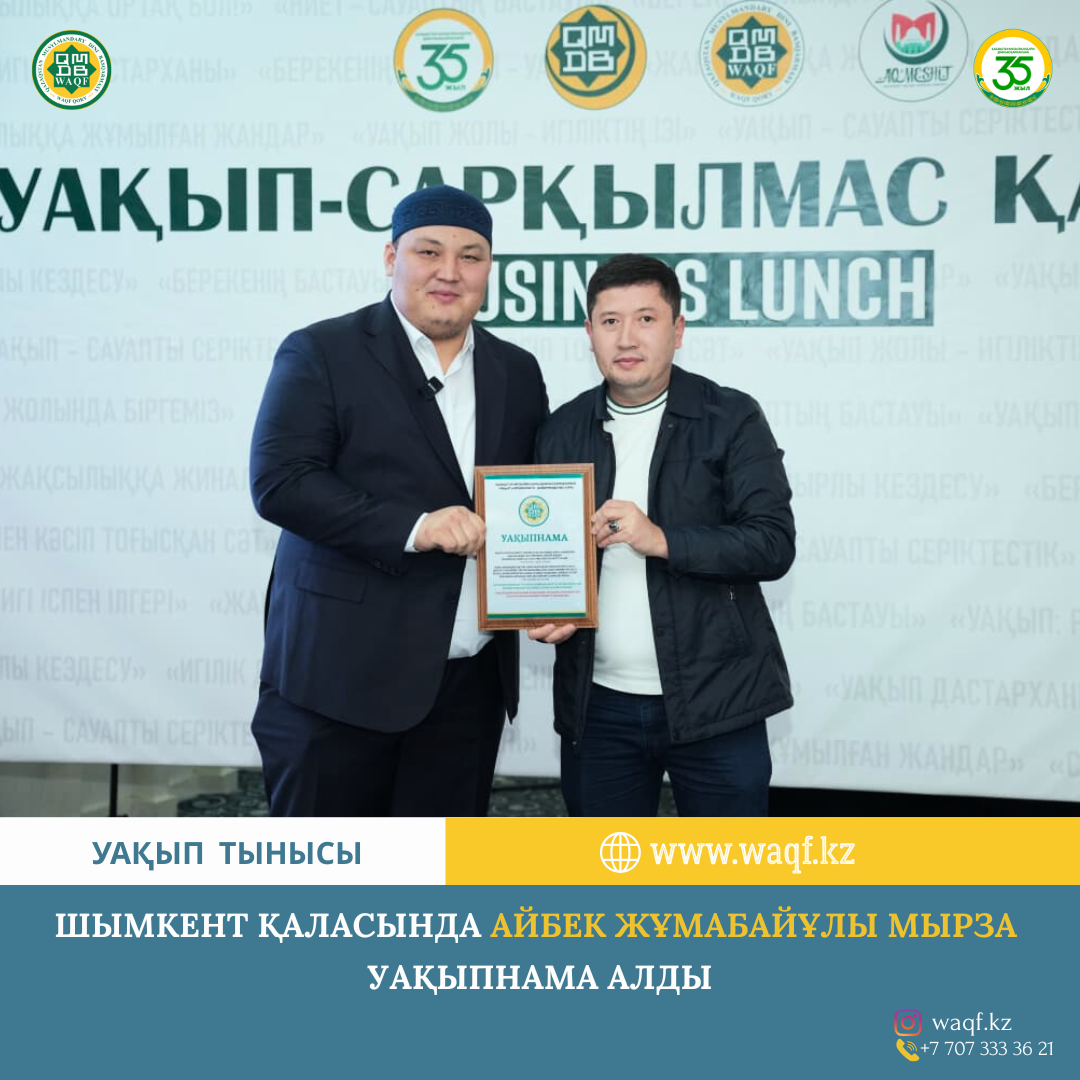 Шымкент қаласында Айбек Жұмабайұлы мырза Уақыпнама алды.