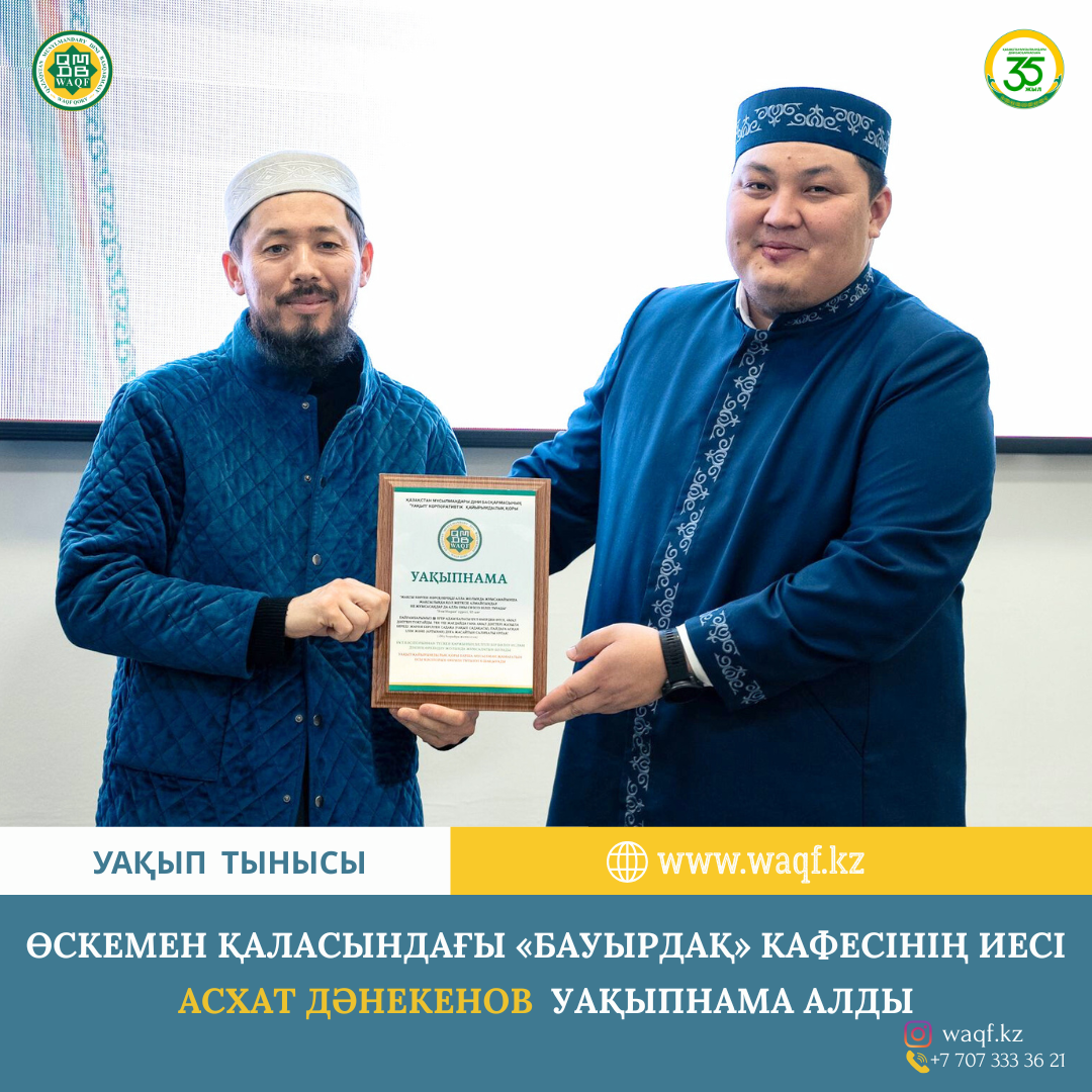 Азамат Әбдікерімұлы, Асхат мырзаға жеткізуші, табыстаушы ретінде тақтайшаны құрметпен Өскемен орталық мешітінің найб имамы Бекзат Құсанбаев ұстазға табыстады.