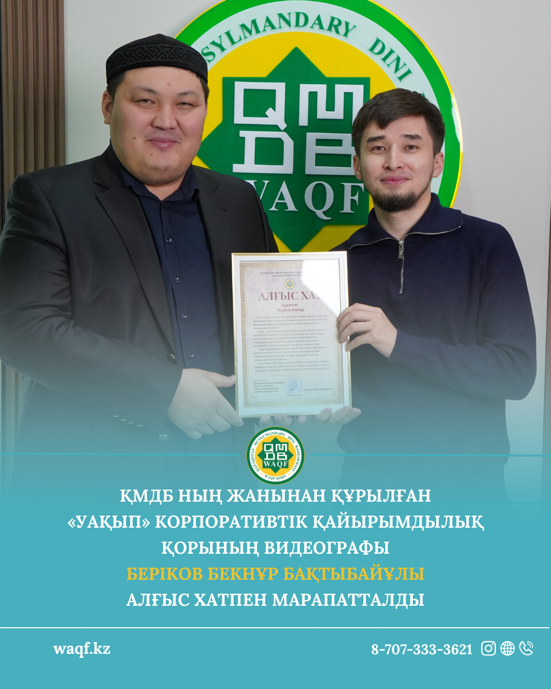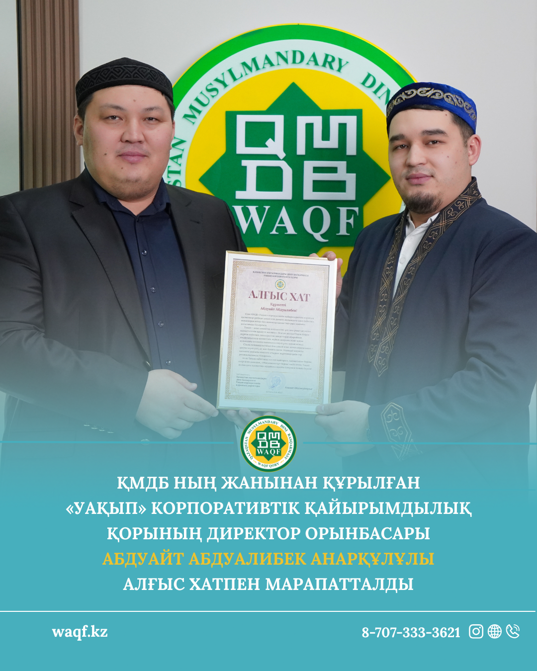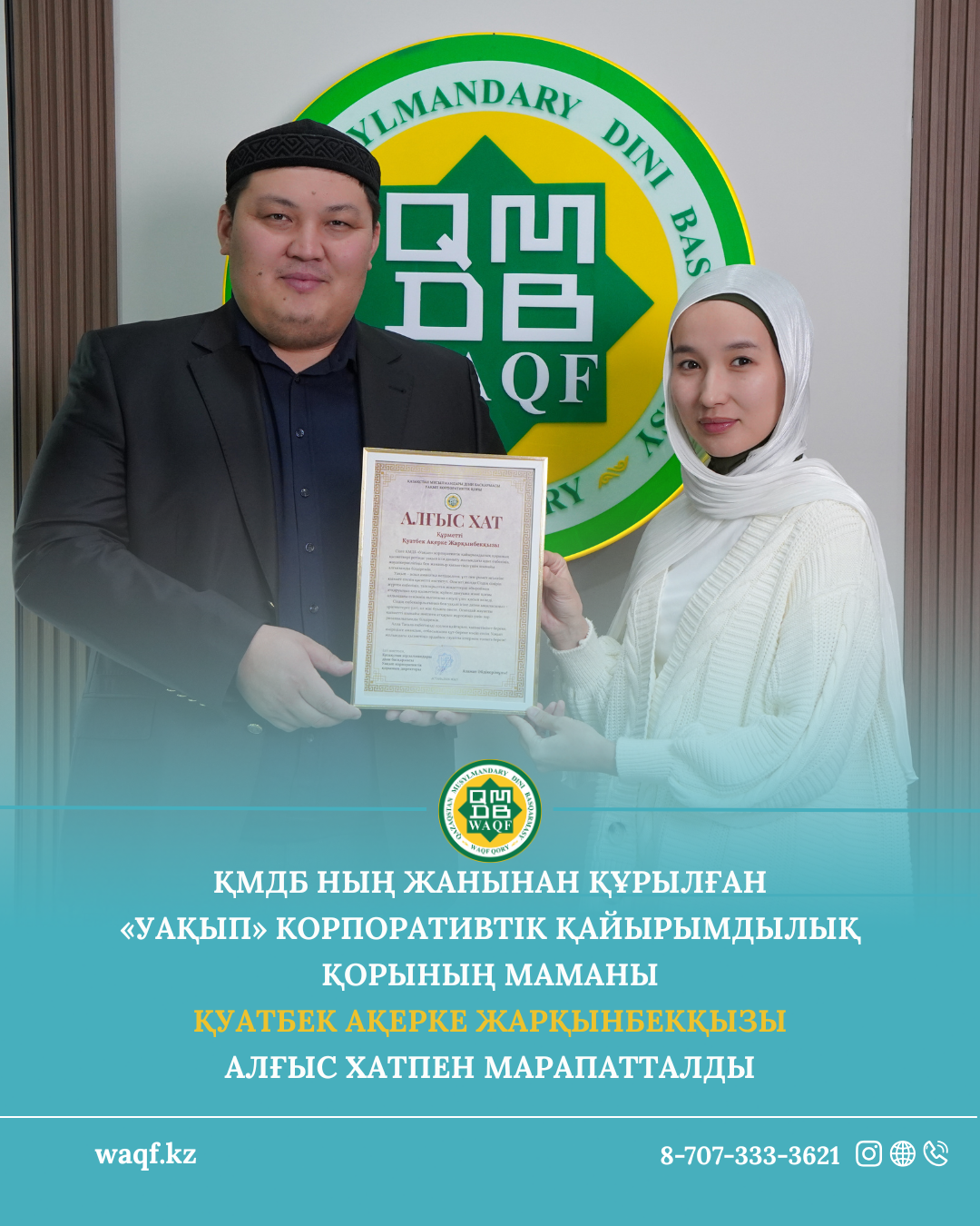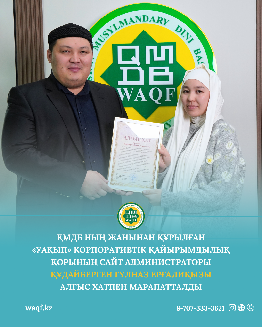 Бұл марапат - жыл бойы уақып ісін дамыту жолында аянбай еңбек еткен, жауапкершілік пен адалдықты ту еткен мамандардың қызметіне көрсетілген құрмет. Уақып - аманат. Ал аманатқа қиянат жасамай, сеніммен қызмет ету әрбір уақып қызметкерінің басты ұстанымы.