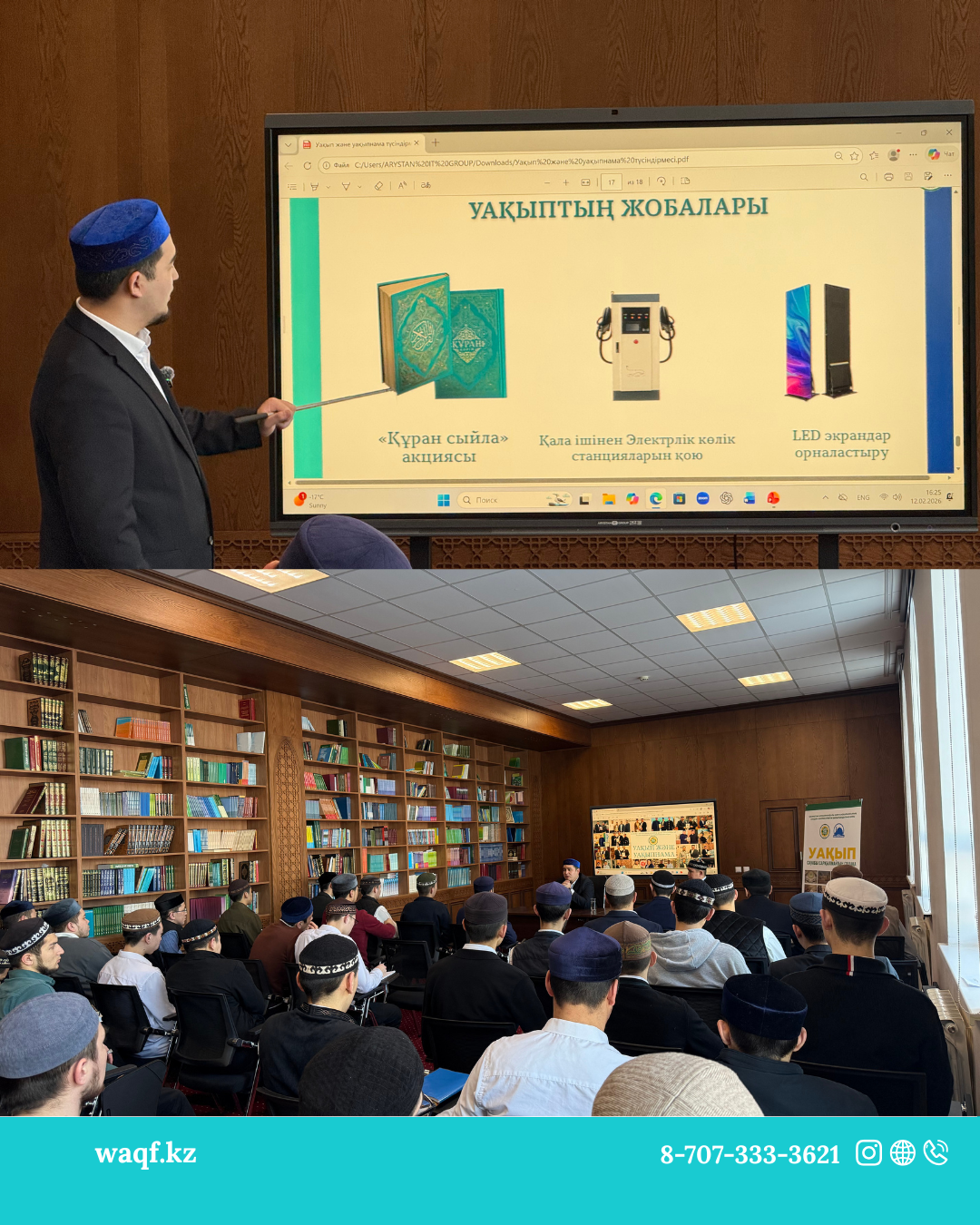ҚМДБ Төрағасы Бас мүфти Наурызбай қажы Тағанұлы хазіретіміздің тапсырмасы аясында, Астана медресе-колледжі шәкірттеріне «Уақып және уақыпнама» тақырыбында семинар ұйымдастырылды.