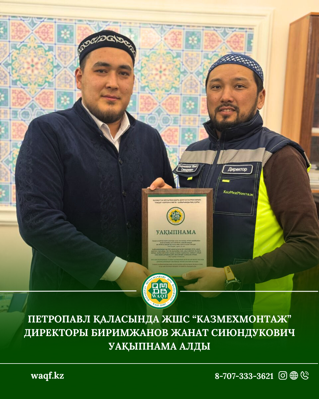 Жанат мырза адал кәсіп арқылы елге қызмет етіп қана қоймай, табысының бір бөлігін уақып жолына арнау арқылы сауапты істі жалғастыруға ниет білдірді.