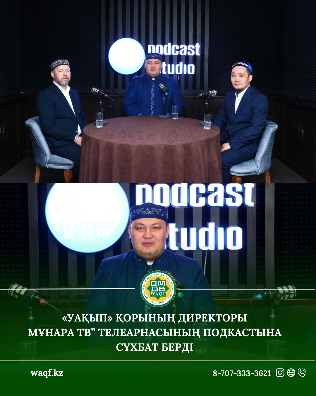 ҚМДБ Төрағасы, Бас мүфти Наурызбай қажы Тағанұлы Хазіретіміздің бекіткен жылдық жоспары аясында , Діни басқарма жанынан құрылған «Уақып» корпоративтік қайырымдылық қорының директоры Азамат Әбдікерімұлы “Мұнара ТВ” телеарнасының подкастына қонақ болып, мазмұнды сұхбат берді.