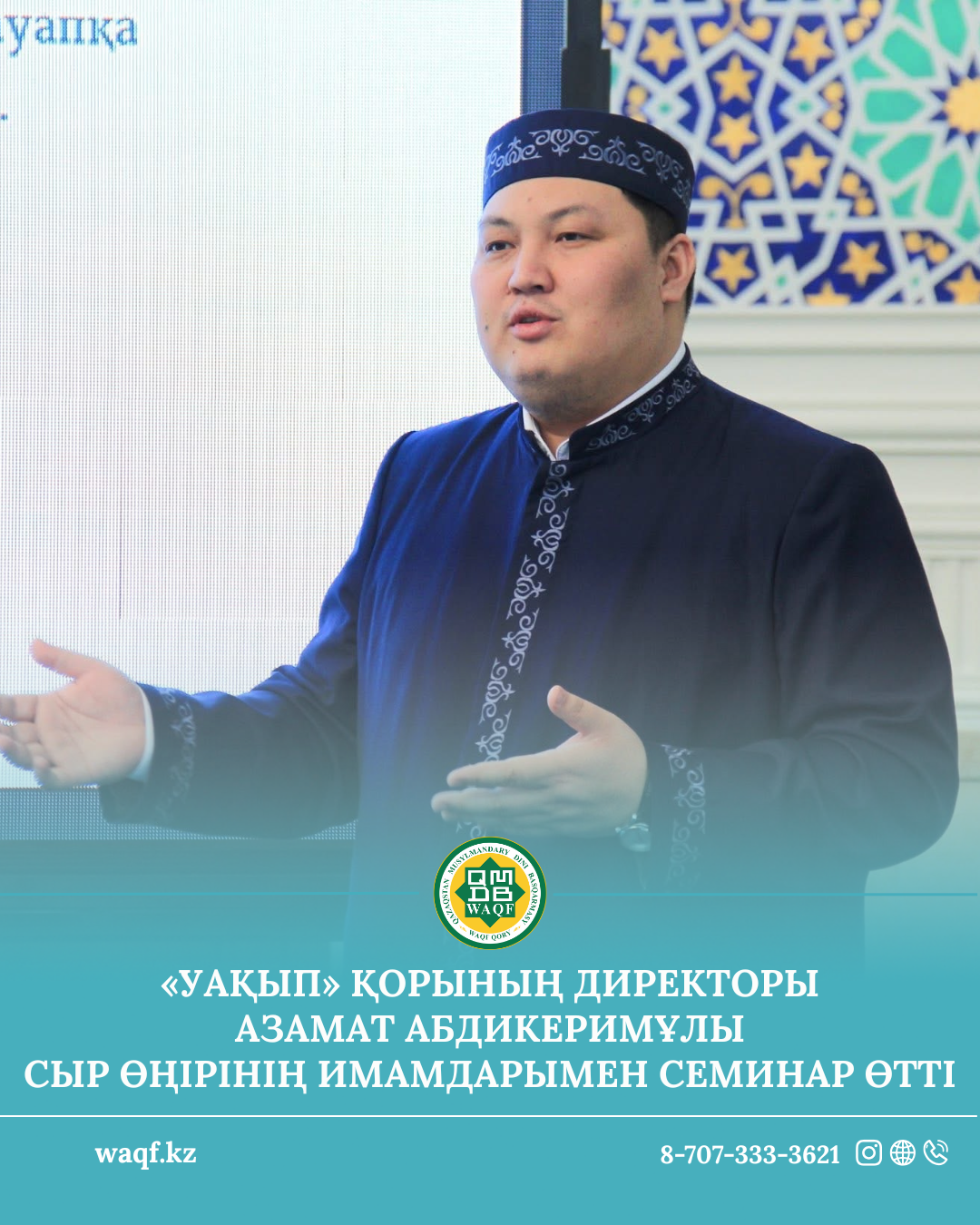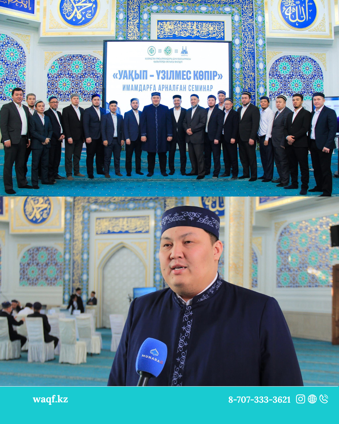 Қазақстан мұсылмандары діни басқармасы Төрағасы, Бас мүфти Наурызбай қажы Тағанұлы Хазіретіміздің бастамасымен ҚМДБ жанынан құрылған «Уақып» корпоративтік қайырымдылық қорының директоры Азамат Әбдікерімұлы Қызылорда облысына жұмыс сапарымен келіп, өңір имамдарымен офлайн және онлайн форматта «Уақып – үзілмес көпір» тақырыбында мазмұнды баяндама жасады.