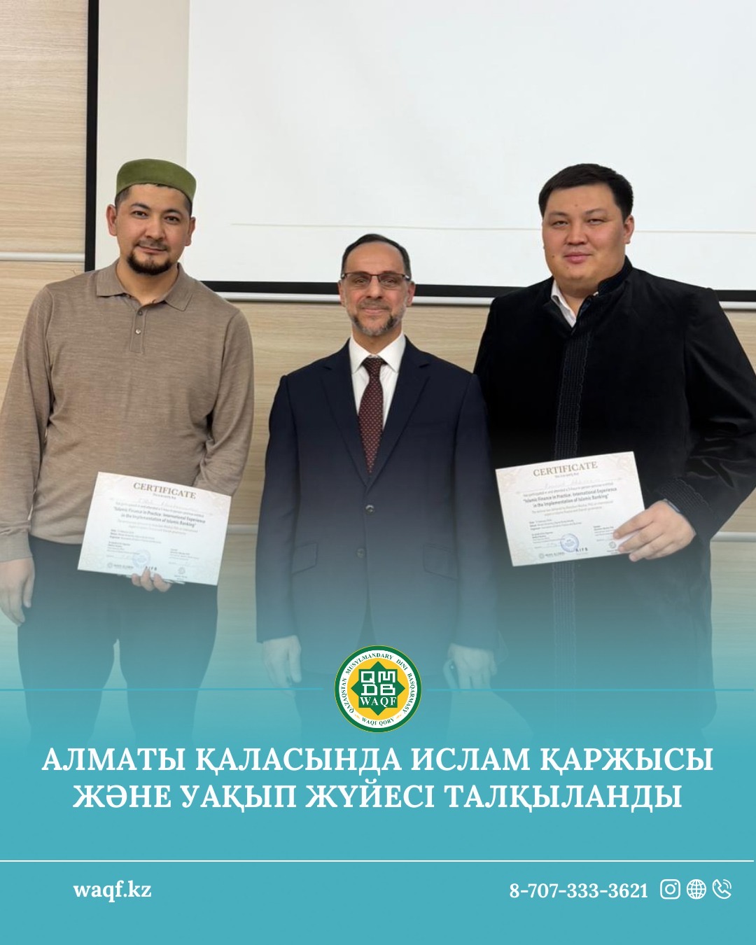Қазақстан мұсылмандары діни басқармасы Төрағасы, Бас мүфти Наурызбай қажы Тағанұлы Хазіретіміздің, ҚМДБ жанынан құрылған «Уақып» корпоративтік қайырымдылық қорын дамыту мақсатындағы тапсырмаларына сәйкес қор директоры Азамат Әбдікерімұлы және ҚМДБ Шариғат және пәтуа бөлімінің маманы, РАНТ мүшесі Елбек Тасболатұлының қатысуымен Алматы қаласында «Ислам қаржысы тәжірибеде» тақырыбында кездесу өтті.