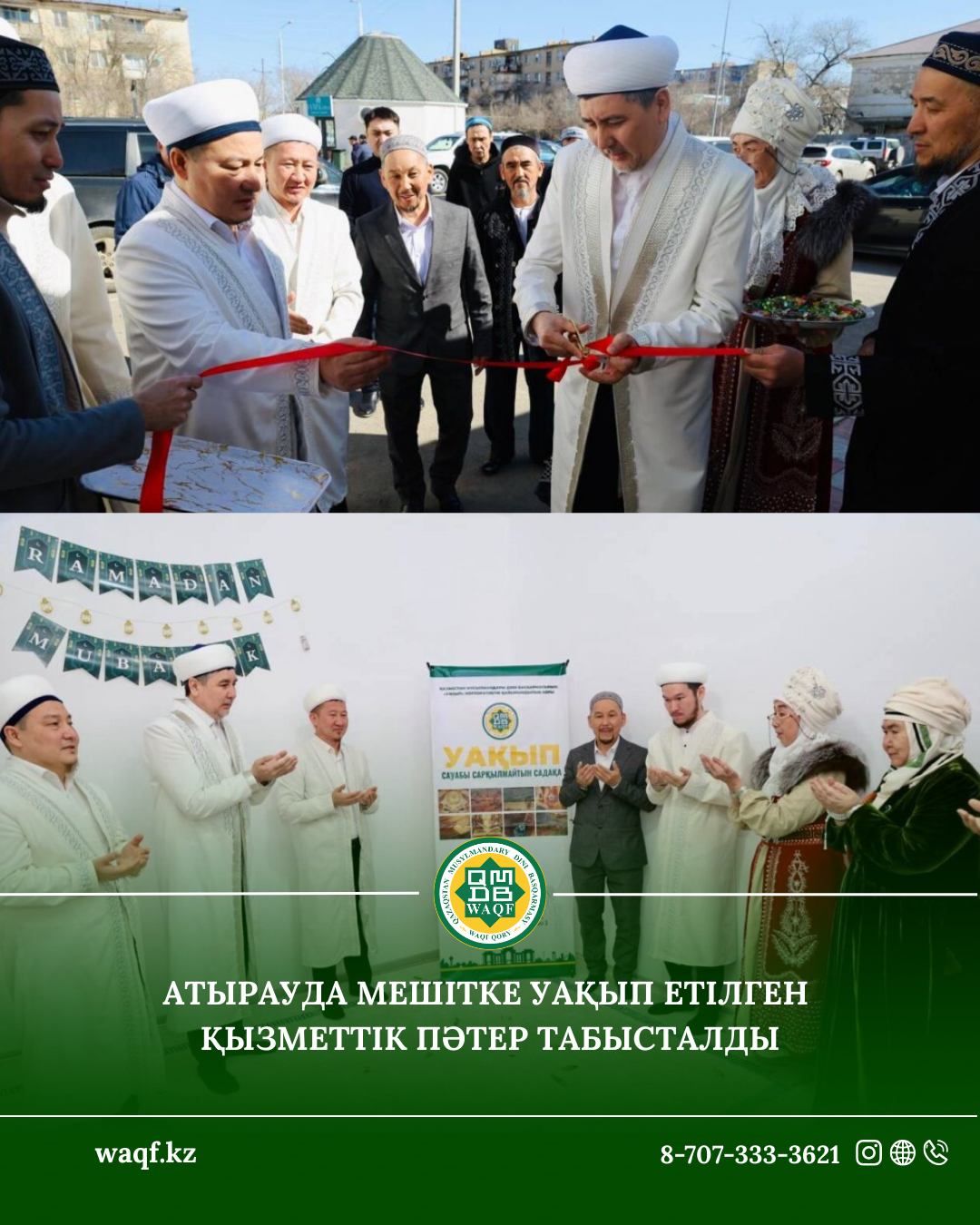 Аталған пәтер мешіттің азаншысы Аманат Қанатқалиұлына берілді. Рәсім барысында бас имам уақыптың қоғамдағы маңызына тоқталып, мұндай игі істер мешіт қызметкерлеріне қолдау көрсетіп қана қоймай, сауапты амалдардың бірі екенін атап өтті. Сондай-ақ мұсылман қоғамында уақып дәстүрі ежелден келе жатқан қайырымдылықтың маңызды үлгісі екенін жеткізді.