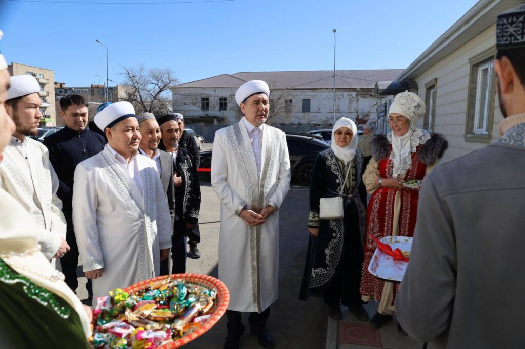 Атырау облысының бас имамы Болатбек Ұласқанұлы Парасат мешіті жанынан мешітке уақып етілген қызметтік пәтерді табыстау рәсіміне қатысты.