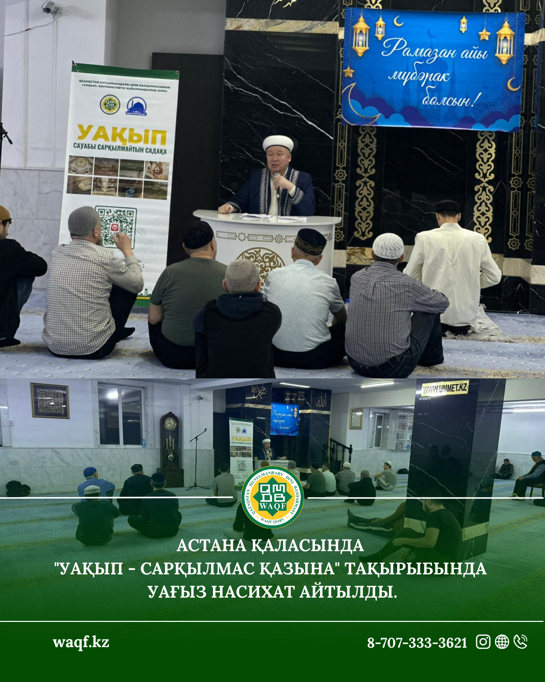 Уақып қорын кеңінен таныстыру мақсатында Астана қаласының мешіт жамағатына "Уақып - сарқылмас қазына" тақырыбында
