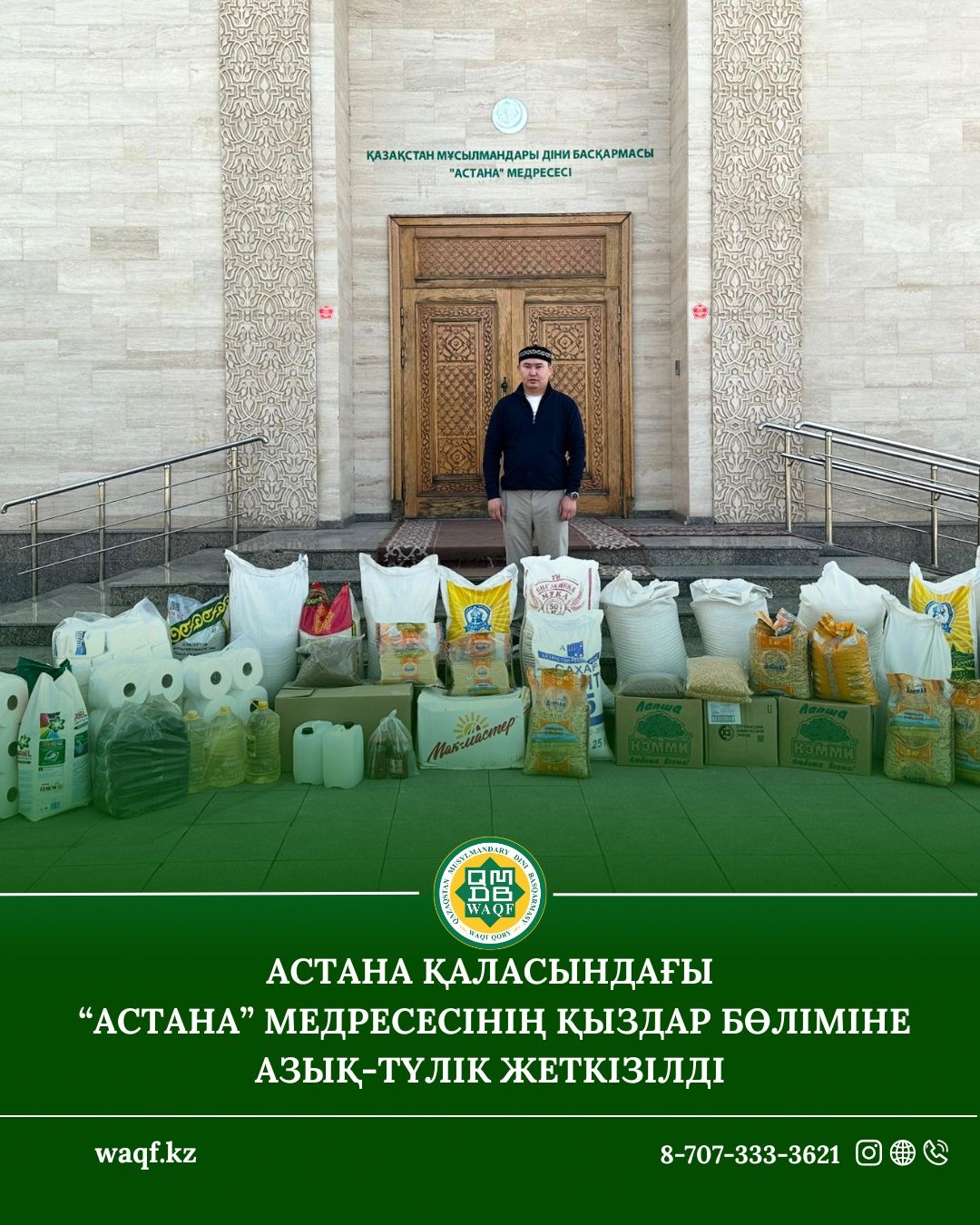 Астана қаласы, “Астана” медресе колледжінің қыздар бөліміне азық-түлік жеткізілді.